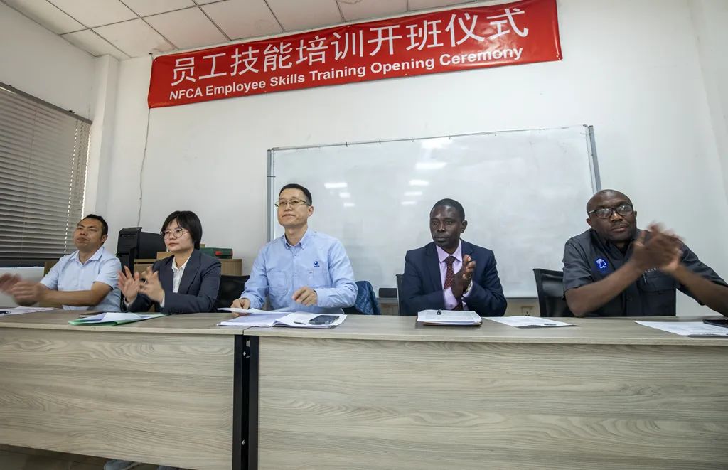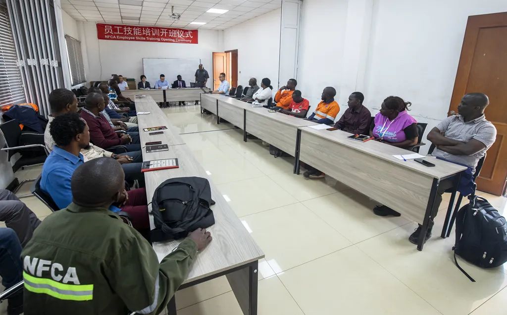 ??開班儀式于中午12點20分正式開始,參會人員包括中色非礦副總經理徐來祥、贊方總經理助理Dean Mwelwa以及首批參加培訓的電工20人,以及中贊職院負責人和授課講師。