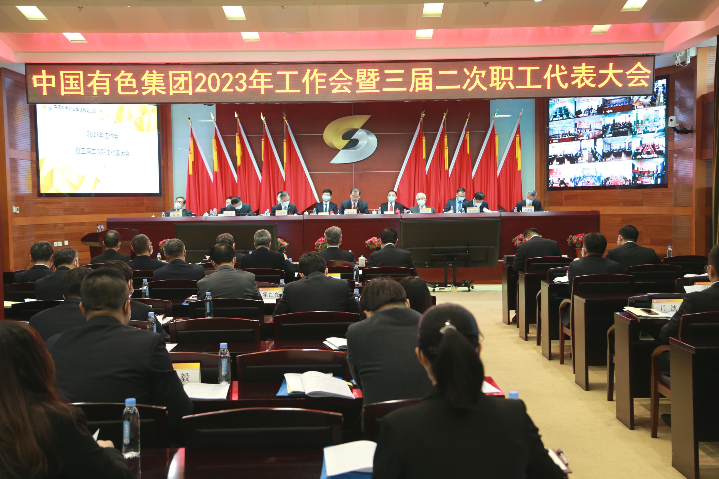 2023年1月9日至10日,中國有色集團召開2023年工作會暨三屆二次職工代表大會,全面貫徹中央經濟工作會議和中央企業負責人會議精神,總結2022年工作,分析面臨的形勢和挑戰,部署2023年工作,加快推動集團公司高質量發展。集團公司黨委書記、董事長奚正平講話,黨委副書記、總經理張晉軍作工作報告。國家審計署企業審計三局一級巡視員張進,中國有色集團外部董事夏策明、馬力、張逢春出席會議。