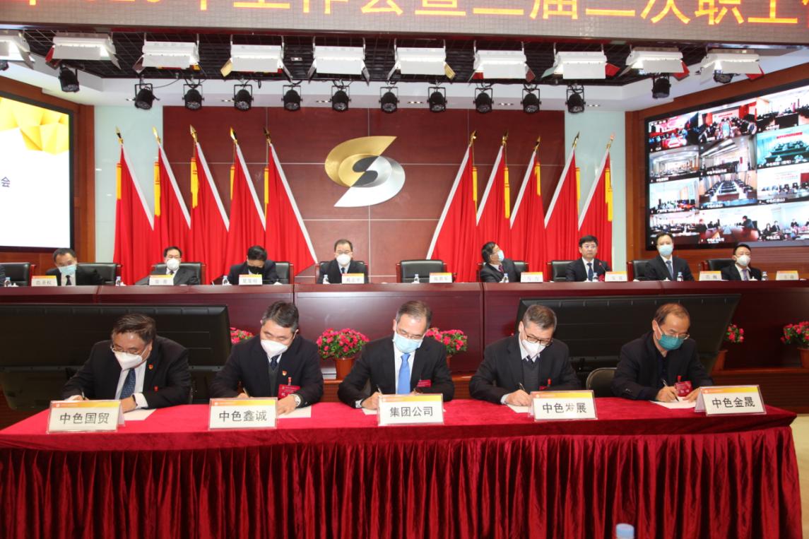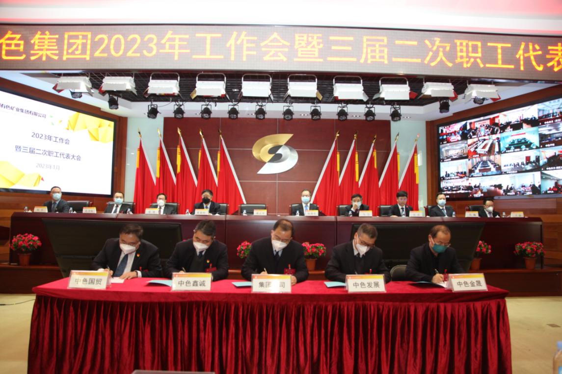 會議還簽訂了出資企業經營業績、安全環保、黨風廉政建設責任書和重點項目“軍令狀”,進行了交流發言,通過了《中國有色礦業集團有限公司三屆二次職工代表大會決議》。??