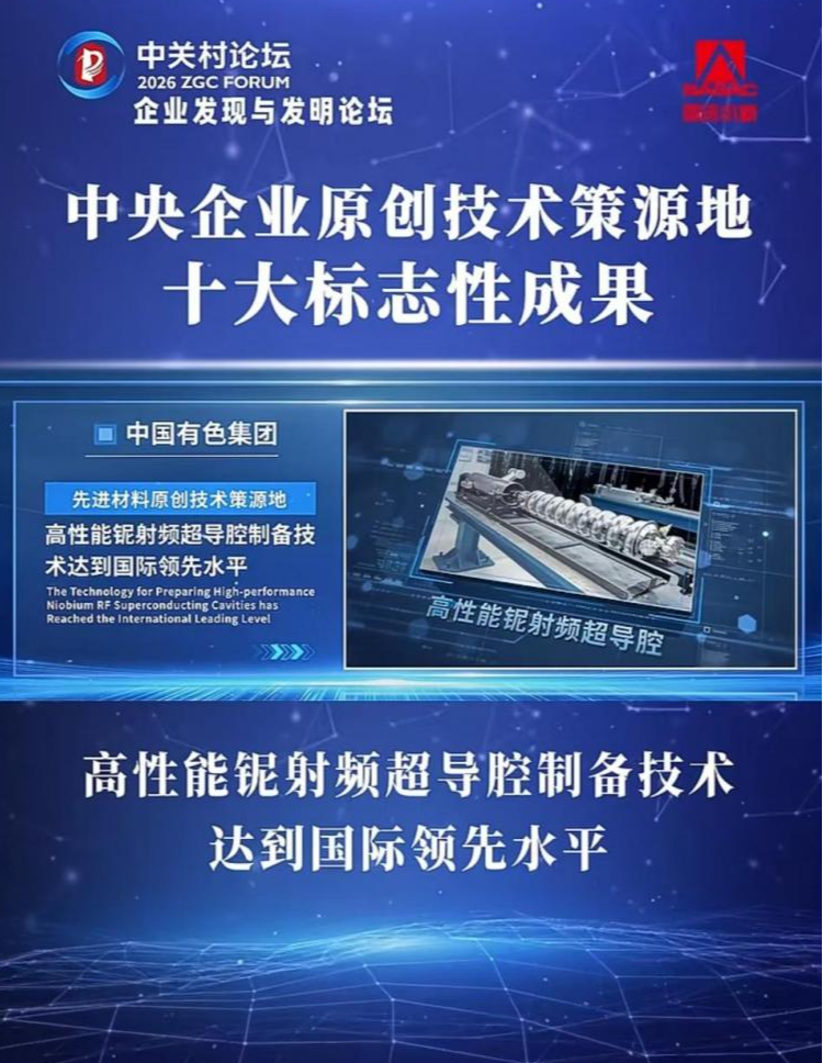 3月27日,在2026中關(guān)村論壇年會“企業(yè)發(fā)現(xiàn)與發(fā)明論壇”上,國務(wù)院國資委首次重磅發(fā)布“中央企業(yè)原創(chuàng)技術(shù)策源地十大標(biāo)志性成果”,中國有色集團自主研發(fā)的“高性能鈮射頻超導(dǎo)腔制備技術(shù)”,憑借重大原創(chuàng)突破、全球領(lǐng)先性能與戰(zhàn)略產(chǎn)業(yè)價值成功入選,成為先進材料領(lǐng)域唯一上榜的標(biāo)志性成果,充分彰顯了中國有色集團在前沿科技與關(guān)鍵材料領(lǐng)域的硬核創(chuàng)新實力。