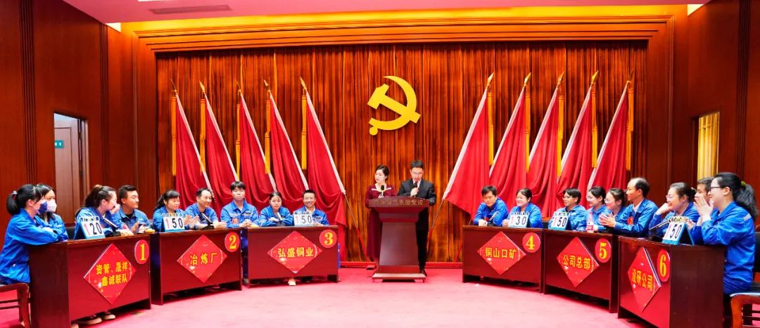 ????在當(dāng)天下午的決賽現(xiàn)場(chǎng),公司總部、冶煉廠、弘盛銅業(yè)、銅山口礦、設(shè)研公司、資管晟祥鑫誠(chéng)聯(lián)隊(duì)6支代表隊(duì)及其方陣在依次喊出參賽口號(hào)后,進(jìn)入激烈的答題環(huán)節(jié)。